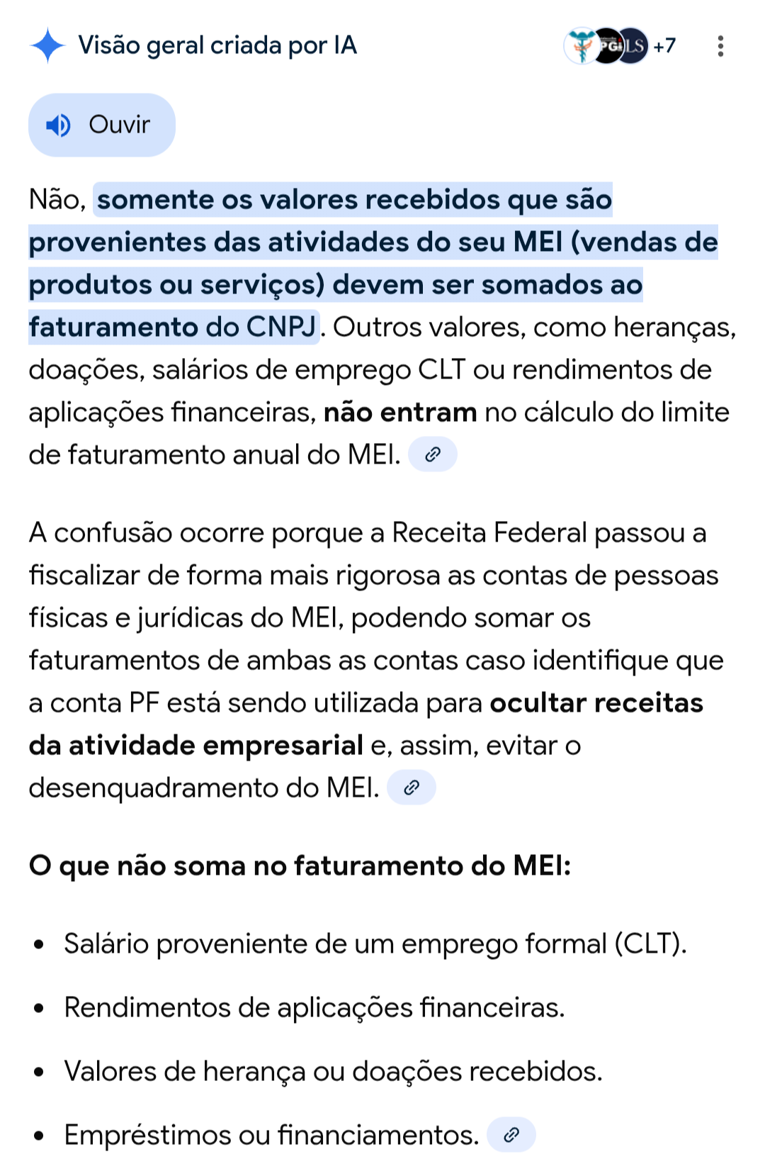 Tira Dúvidas: Perguntei para o google: "Todos os valores recebidos na conta pessoa física que não são de atividades vão somar no faturamento mei?"
